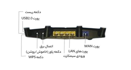 - پورتها: 4x LAN (10/100/1000)، 1x WAN (10/100/1000)، 1x USB 2.0، شیار سیمکارت